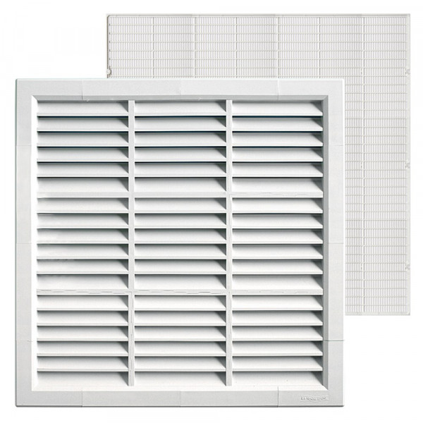 La grille est équipée de lames anti-pluie et d'une moustiquaire, adaptée pour une utilisation intérieure et extérieure. La moustiquaire peut être facilement retirée si nécessaire.